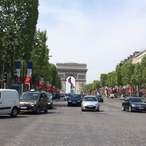 Today was a nice relaxing day. We slept in and relaxed in the AM. Once we got our acts together, we headed out to explore the city on VE Day. We headed over to the Champs-Elysees, but even though we missed the military parade in honor of VE Day we were able to enjoy most of the Champs being closed to vehicles for 8 hours. We walked down the middle of the busy road with the Arc de Triumphe behind us and the Ferris Wheel at the start of the Jardin de Tuileries ahead. We were walking with thousands of our closest friends. Once the sun is out, everyone in out. Frenchies are sun worshipers, but without the sunkissed tan. I could get use to this.