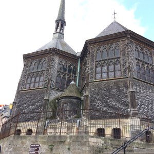 Per Rick (Steves) there was a can’t miss church in the heart of Honfleur’s old town. Saint Catherine’s Church was built completely of wood by ship builders in the 15th century. You can tell the blood, sweat and salt that went into building this church. The ceiling looks like the inside of a ship and the craftsmanship of the delicate accents is beautiful. You can tell that the church was influenced by the sea. An interesting fact is that the bell tower is actually a separate wooden structure from the church for 2 reasons. First, is because of weight, due to the church being wood, the town’s people were worried it would not be able to with stand the weight. Second, was for fire. If the church went up in flames, since the bell tower is separate, if would (likely) be spared.