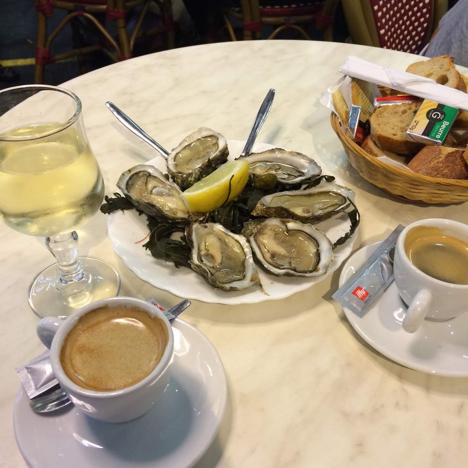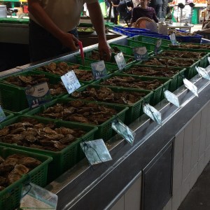 We then did my favorite weekend activity; we went to the market. We headed to Marche des Capucins. The place was a massive covered market. There was fruit, vegetables, meats, cheese and fish as far as the eye could see. Per Lonely Planet, the recommended having a glass of local white wine and oysters at one the cafes in the market. I’m not going to argue with that. We sat down at Chez JeanMi. I was in heaven. 6 oysters and a glass of white wine for 7 Euros, what a deal!