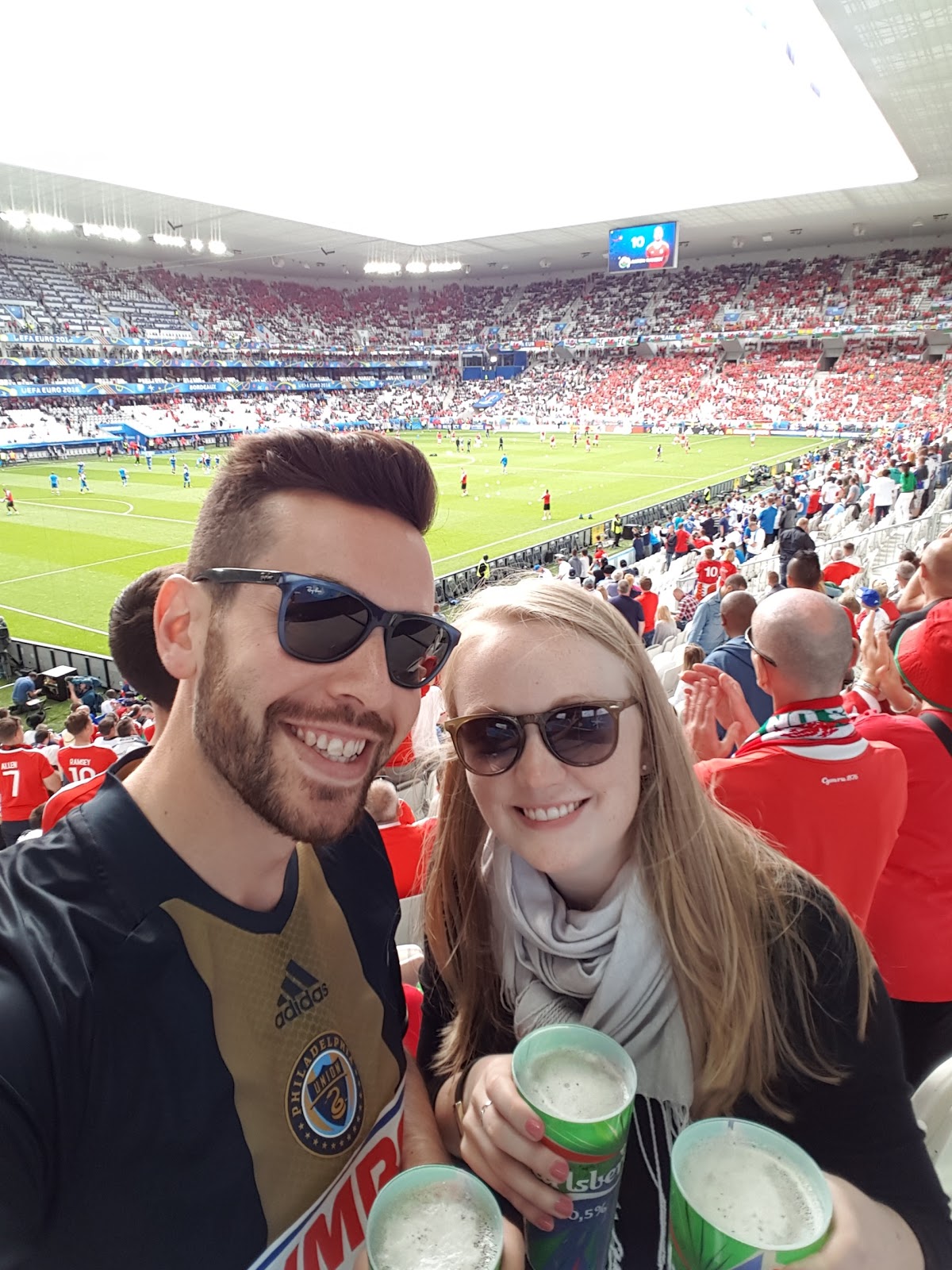 We then headed out of Bar a Vin to grab quick sandwiches and take the tram to the football match. The game was Wales v. Slovakia. The Welsh are crazy and showed up in force (as Jer informed me they had never made it to a major tournament before in their existence), more so than the Slovakia fans. Jer and I now have one of the fight songs forever stuck in our head, as we were singing along with them on the tram and bus. The nice thing about this game, as since they weren’t two marquee teams, tickets were still available on the UEFA website for face value.