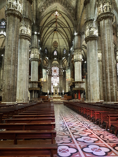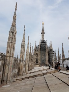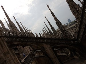 After we finished our beers we headed over towards The Duomo as it was one of the places we had on our list of things we wanted to do while in Milano. There was barely even a line and we were able to buy our tickets and start off on our walk up the stairs and onto the roof to take in the view of the entire city (boy was the walk worth it). After we got to the top we sat and relaxed for a little while since it was so hot out, and then made our way around checking out all the areas on the roof. Once we were done up there we walked back down and with our tickets we were able to go inside the cathedral as well (yet another thing that is definitely worth it). The pure size alone is just amazing, and then you add all of the other architecture and stained glass and you cannot help but be in awe of it all.