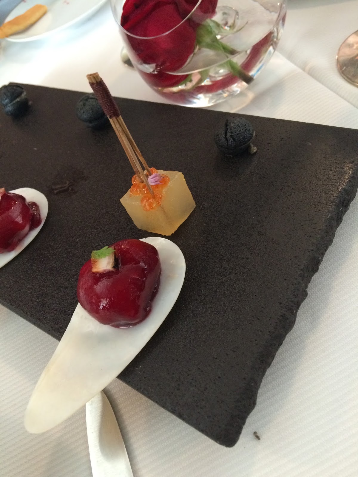 To continue on with getting totally immersed in the French culture, we went to a one star Michelin restaurant for lunch. First rule of Michelin star restaurants, always go for lunch because the food is the same quality but smaller portions for a much smaller price. Went to Goust and I thought it was fabulous. However, there were definitely some eclectic ingredients, like rather potent fish roe on a cucumber gazpacho. But you can not come to France and not go to a Michelin restaurant. Here are a few pictures from our meal.