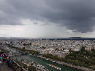 We then slowly made our way to the Eiffel Tower as we had bought tickets in advance to go up at 3pm. We walked to the Eiffel Tower through Champ de Mars, the park behind the tower to take in the size as we approached. We wound through security (twice) and were on our way in the elevator up to the second floor. The views are just amazing. However, it did start to rain a little, however we had come prepared!