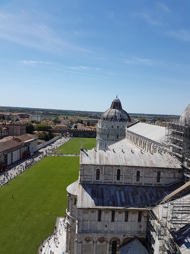 However, we purposefully booked a late flight back to Paris to have time to go into the town of Pisa itself. We enjoyed the tower and took the most touristy pictures we could. We also had gotten tickets and walked to the top. The walk up to the top was so weird. Why you may ask, you just going up the stairs. Well, depending on if you are walking with or without the lean makes the walk easier or harder. And it is super narrow. There is only one stair case to go up and down, so there is 2 way traffic.