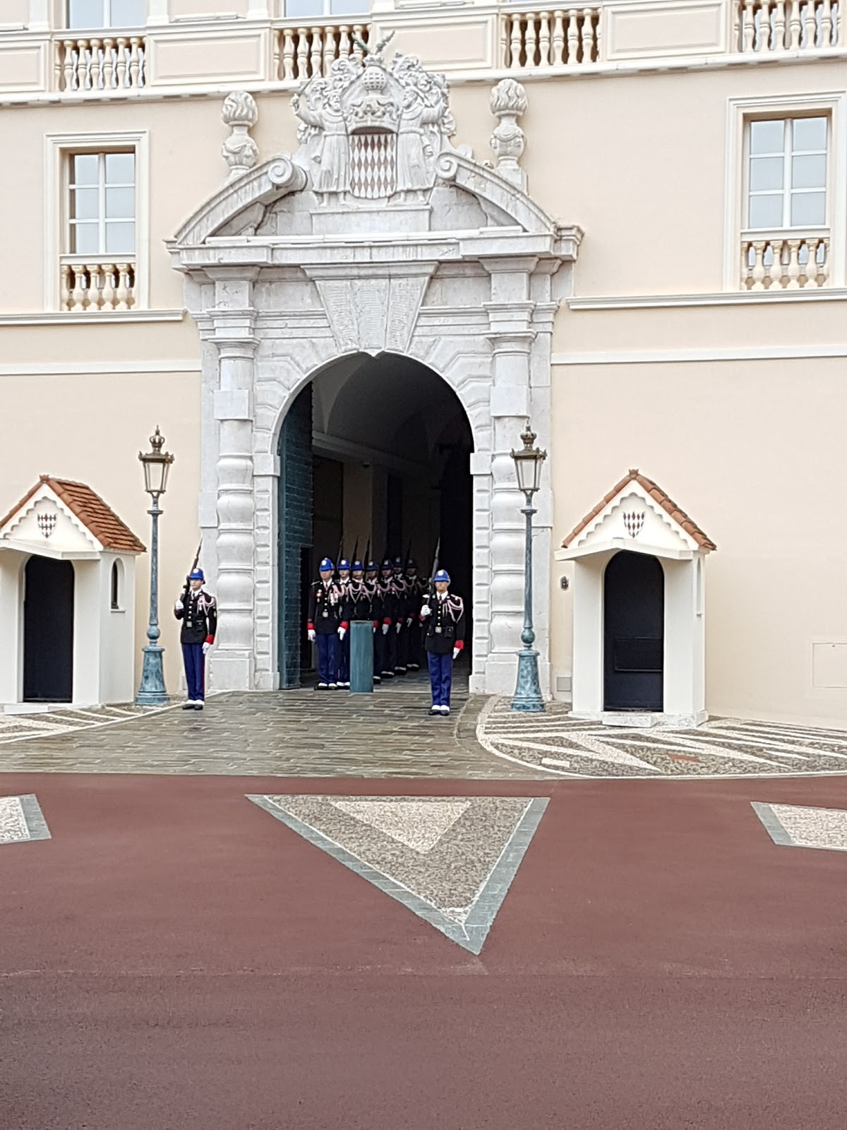 We then started to walk around the city, and well country. It was a bit of a dreary/misting/rainy day but we knew that and came prepared. We found our way to a small market, that was both outdoors and covered and got a quick bite to eat. We then walked up to the Princes Palace (literally up, it was one heck of a climb). Since we got into Monaco so early, we were able to see the changing of guard just before noon.