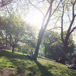 With the weather getting nice, people are coming out their winter hiding to enjoy the sun. I have said this before and I will say it again, the French are sun worshipers. As soon as the weather gets nice enough to be outside with a light coat, the parks become full. We are now also starting to be sun worshipers (don’t worry Mom, I am wearing sunscreen). Today we went to Parc Monceau to have a late afternoon picnic. Parc Monceau is one of my favorite parks because you can actually sit on the grass, there are lots of big trees for shade, you can picnic anywhere, and there is plenty on entertainment from a pond to pony rides to a carousel and lastly, and very important if you bring wine to the picnic, a free public toilet that is very clean.